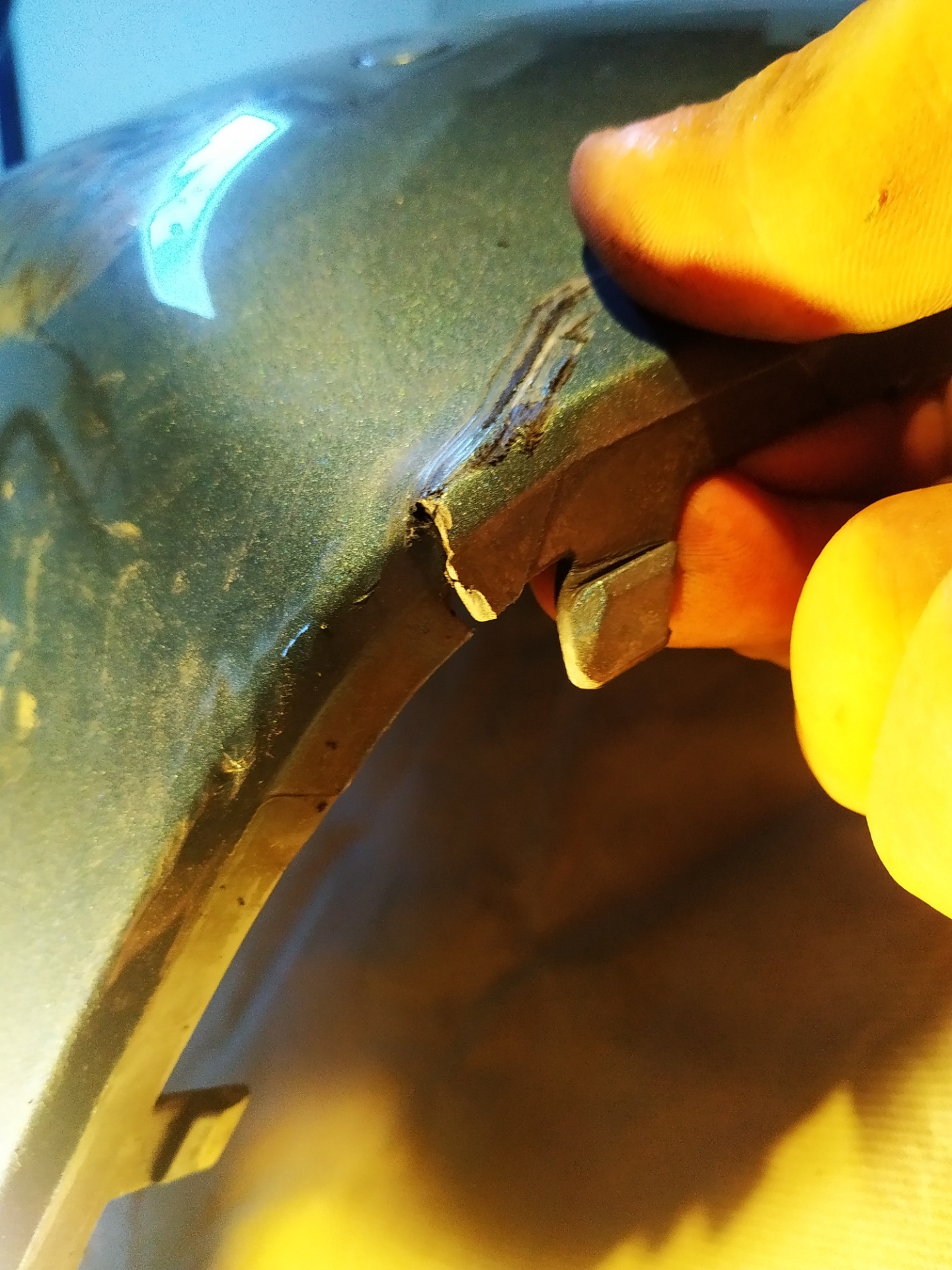 Mint tudjuk a Pannóniák oldalkocsija a "Szivar" Aluminiumból van.Az alu azért nem javítható,mert ha horpadtt nem lehet kalapálni mert megnyúlik majd eltörik.További gond vele,hogy ha kimagaslik a felület,hamarabb elkoptatja a csiszolópapír mint a kittet(kilyukad a lelkem).Az már csak hab a tortán hogy nehezen tapadnak felületén az anyagok.Tehát harcra fel....